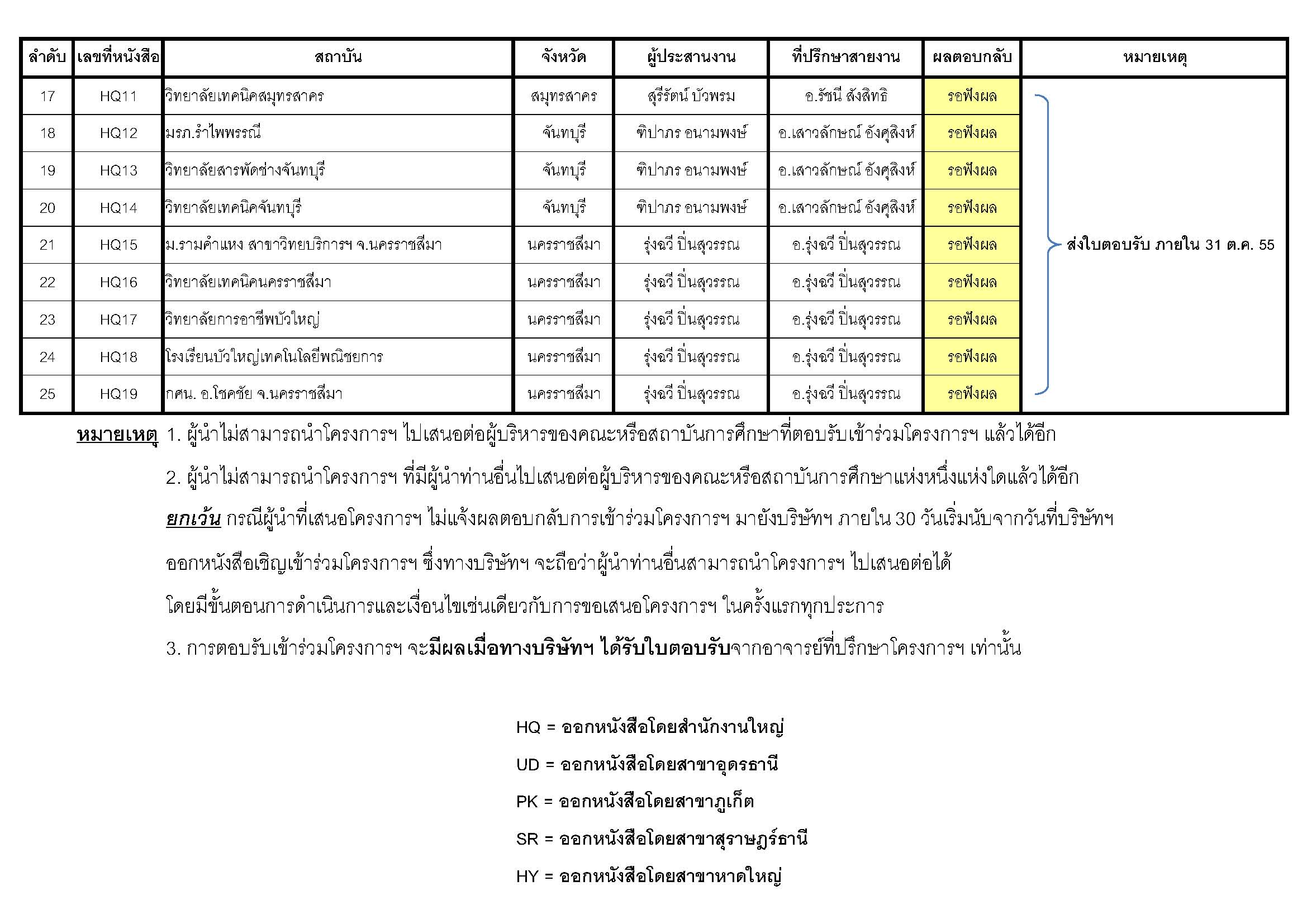 UPDATE รายชื่อสถาบันการศึกษาที่ตอบรับเข้าร่วมโครงการฯ
