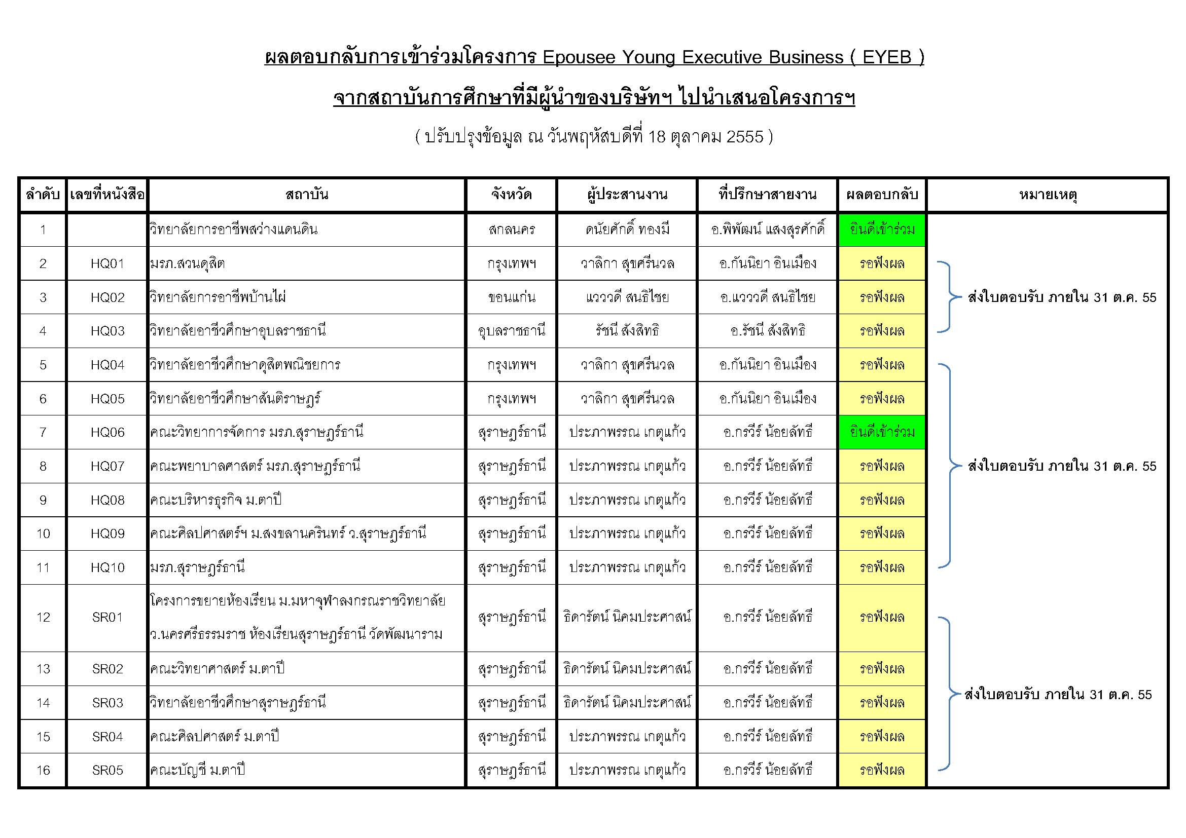 UPDATE รายชื่อสถาบันการศึกษาที่ตอบรับเข้าร่วมโครงการฯ